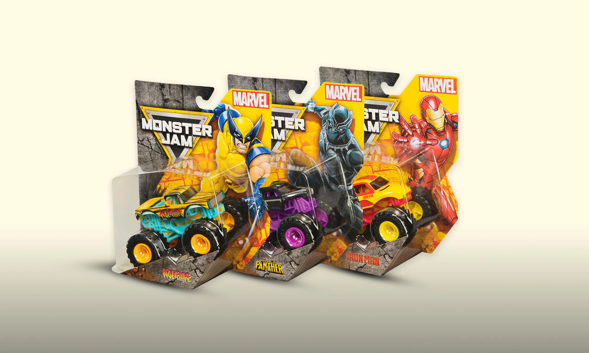 As part of the Monster Jam rebrand, I updated the Marvel segment to align with the franchise’s new high energy identity. The challenge was to merge Marvel’s iconic strength with Monster Jam’s grit and adrenaline. I adapted color palettes and graphic treatments to create a cohesive system that works seamlessly across packaging and branding. The identity brings comic book heroism into Monster Jam’s larger than life world, resulting in a unified, instantly recognizable look that feels fresh and dynamic.